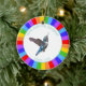 Blue Hummingbird on Rainbow Colours Ceramic Tree Decoration
