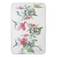 Darling collage of vintage botanical fine art of exotic tropical blue headed Hummingbird Birds and red tropical Flowers is on this Bath Mat. Images are public domain due to expired copyright.
