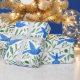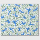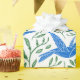 Cute blue hummingbirds with green leaves seamless pattern over white background.