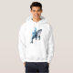 traditional watercolor and ink artwork of an abstract blue humpback whale swimming along on a hoodie