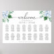 This seating chart poster features a soft watercolor blue hydrangea floral design and 16 tables layout. The script text heading is an image that cannot be edited. The heading image can be resized to fit any poster size. All of the other text is fully editable. For more advanced customisation of this design, simply select the "Customise It" button above.
