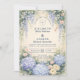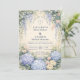 Blue Hydrangea And Ivory Rose Wedding Invitation