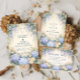 A romantic wedding design featuring lush dusty blue hydrangeas paired with soft ivory roses and delicate meadow blossoms. The florals frame the layout in a graceful, symmetrical garden composition accented by subtle classic detailing. Set against a warm parchment background, the palette feels refined, timeless, and effortlessly elegant. Perfect for a sophisticated celebration with a soft blue botanical aesthetic.