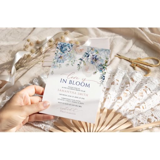 Blue Hydrangea & Blush Roses Save the Date Invitation