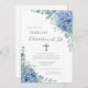 Blue hydrangeas on a white background beautiful religious funeral Celebration of Life invitation. A beautiful and elegant invitation for any season. Beautiful coordinating holy cross in the center of this beautiful design. Simply lovely. The watercolor hydrangeas are just stunning. Classy & chic.