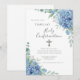 Blue hydrangeas on a white background beautiful religious holy confirmation invitation. A beautiful and elegant invitation for any season. Beautiful coordinating holy cross in the center of this beautiful design. Simply lovely. The watercolor hydrangeas are just stunning. Classy & chic.