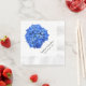 Blue hydrangea custom paper napkins. Use this pretty, blue floral design for bridal showers, wedding receptions, or any event. Customise two lines of text. Angled design on coined napkins.