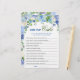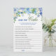 Blue Hydrangea Floral Bridal Shower Game