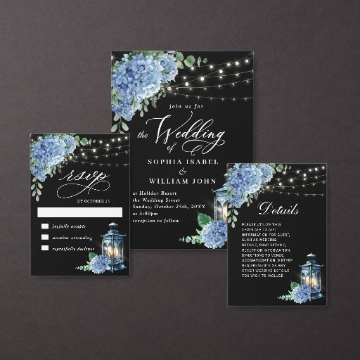 For further customisation, please click the "Personalise this template", then "Edit using Design Tool". Stylish editable easy to use wedding templates, more items available in the store (invitations, rsvp, thank you cards, stationery & decor). If you need help or matching items, please contact me. Blue Hydrangea Floral Lantern Black Boho Wedding Guest Book