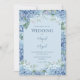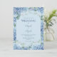 Beautiful blue hydrrangea downloadable wedding invitation. Gorgeous fonts on a coordinating blue background done in deep blue script and print. The perfect wedding invitation for any season wedding.