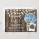 Blue Hydrangea Floral Rustic Wood String Lights Photo Retirement Party Invitations.
