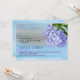 The front of this outstanding wedding couple's shower invitation showcases lavender purple-blue hydrangea or hortensia flowers on watercolor background in tones of blue and purple. The back features blue and purple watercolor. Choose it for your spring wedding shower. Some elements come from ArtsyBee, Pixabay.