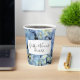 Personalise these pretty Blue Hydrangea Flowers Wedding Paper Cups for your casual yet classy summer marriage reception or bridal shower garden party. These informal yet elegant disposable cups feature a close up floral photograph of light blue hydrangea flower blossom petals.