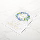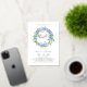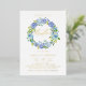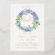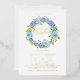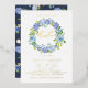 Invite guests to your event with this customisable gold foil christening invitation. It features a watercolour floral wreath of blue and purple hydrangeas and roses. Personalise by adding your details. This blue hydrangea christening invitation is perfect for spring and winter events. Matching items are available.