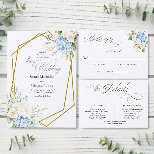 Blue Hydrangea Geometric Wedding InvitationDesigned by Phyllis Waugh
