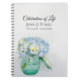 Invite guests to leave a note in remembrance of your loved-one after their passing with the pretty Blue Hydrangea in Jar Celebration of Life Guest Book. This charming custom flowery funeral memorial tribute notebook features a floral photograph of a light blue hydrangea flower blossom in a glass jar. Personalise it with a picture of the deceased, birthday, death date and name.