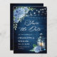 Blue Hydrangea Lantern Navy Wood Wedding Save The Date