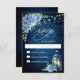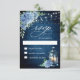 Blue Hydrangea Lantern Wood Wedding RSVP Card.