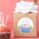 The sticker is made on wonderful paper and had no problem sticking to the bag that I purchased to put it on. I wanted to find a design that would be cute for the bride and groom and this one fit the bill as it has cute "bees" buzzing around and the wedding was taking place in a town called "Bee Cave". The packaging was great and protected the stickers. The website is easy to navigate and there are so many color choices. I had no problem finding a color that the bride was using on everything else selected. The design was adorable and there were many to choose from. You can make the figure as larger or smaller and you can place the photo and writting whereever you want to in the sticker. The printing is fabulous..better than expected.
