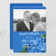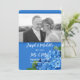 Announce a private marriage with this bright blue stationery. Include a photo and customise the text. Realistic blue hydrangea flowers decorate. Choose the instant download and share with everyone online to save money.