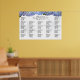Alphabetical seating chart for a hydrangea / blue wedding. Two big starfish images on the background represent the couple with a pretty, light blue floral border at the top. Last name in large letters with names of the bride and groom and wedding date in smaller text. List guests name in each section. Also view this poster without the starfish below.