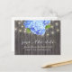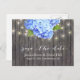 Blue Hydrangea & String Lights Wood Save the Date Announcement Postcard