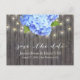 Blue Hydrangea & String Lights Barn Wood Save the Date Announcements.