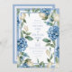 Celebrate your love with our stunning wedding invitation featuring blue watercolor hydrangeas intertwined with delicate spring flowers in shades of blues & whites. Accented by whimsical greenery, this design exudes timeless elegance and charm. Coordinating blue font adds a harmonious touch, perfectly complementing the artistic details. The graceful typography makes this invitation a versatile choice for weddings in any season. Let this design set the tone for your special day with its romantic and sophisticated style.