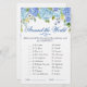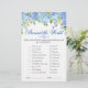 Blue Hydrangea Floral Watercolor Bridal Shower Game .