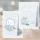 This beautiful design features your monogram in a watercolor painted crest with a ribbon and hydrangeas. Use the template form to add your information.