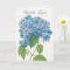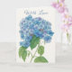 Elegant blue hydrangea watercolor greeting card designed for flower lovers and beautiful handwritten correspondence.
