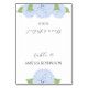 Blue hydrangeas are my favourite flowers. This is my own original watercolor art. The whole wedding suite coordinates. NOTE: These cards arrive flat. You fold them in the middle to make them into tent cards. Personalise each card for individual guests and add each card to your cart separately.