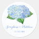 These wedding stickers feature watercolor hydrangea flowers. You can personalise these stickers with your names and wedding date. Click on the "Customise" button for more options if you need to change the text size or would like to add any additional text. These stickers are ideal for use as envelope seal stickers or for decorating wedding favours. These stickers are part of the Blue Hydrangea Wedding Collection which includes a full range of matching wedding stationery such as wedding invitations, reply cards, information cards, address labels, postage stamps, envelopes, favour boxes, wishing well cards, programs, menus, bridal gifts and much more. Visit the collection page in our store to see the full range of bridal products that you can personalise for your wedding.