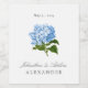 A fun gift for guests in their hotel room, the newlyweds on an anniversary, ahead of time at a bridal or couple's shower, or on the big day as part of the wedding reception decor, these wine bottle labels feature a classic periwinkle blue hydrangea blossom, and personalised date and name text. Lots of white space keeps the aesthetic clean and fresh with a hint of garden party elegance.
