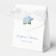These wedding favour boxes feature blue hydrangea flowers. The front and back of the box have flowers, bride and groom names and wedding date. These wedding favour boxes are part of the Blue Hydrangea Wedding Collection which includes a full range of matching wedding stationery such as wedding invitations, reply cards, information cards, address labels, stickers, postage stamps, envelopes, favour stickers, wishing well cards, programs, menus, bridal gifts and much more. Visit the collection page in our store to see the full range range of matching products that you can personalise for your wedding.