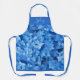 Pretty blue hydrangea apron with place for name. A single, bright blue hydrangea bloom covers this bib apron and all the little petals that make up the flower can easily be seen in their glorious shades! A blue space at the top holds the text template where a name can be added using a modern script font in white. Choose either size adult apron. The name will be cut off on the child's size. The blue straps match the design, but you can change their colour.