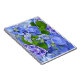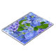 Lovely hydrangea flowers in shades of blue and mauve, with little blue butterflies.