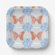 Blue Hydrangeas and Pink and Orange Butterflies Paper Plate