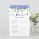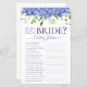 This lovely blue hydrangeas How Well Do You Know The Bride? bridal shower game sheet is elegant and charming - perfect for any garden, botanical, rustic, romantic, floral, formal or vintage wedding. Its exquisite combination of graceful multi-hued blue hydrangeas and wispy greenery is flowy, delicate, and beautiful. This fun and easy game is sure to bring lots of laughter to any bridal shower! Simply give a sheet to each guest (don't forget the pens) and let the fun begin! You'll be amazed at how many people know answers. To make this game your own simply select Personalise this template and type in the bride's name.
