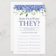 This lovely blue hydrangeas How Old Were They? bridal shower game sheet is elegant and charming - perfect for any garden, botanical, rustic, romantic, floral, formal or vintage wedding. Its exquisite combination of graceful multi-hued blue hydrangeas and wispy greenery is flowy, delicate, and beautiful. This fun and easy game is sure to bring lots of laughter to any bridal shower! Have family and friends send you pictures of the bride and groom at all different ages and have them printed. Number them and set them near these game sheets. Simply give a sheet to each guest (don't forget the pens) and let the competition begin! You'll be amazed at how many people really know the ages of the bride and groom. In seconds you can see how your game sheet will look. Simply select Personalise this Template and type in the names of the bride and groom.