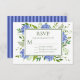 This charming and elegant RSVP card with beautiful, wispy, multi-hued blue hydrangeas and stunning green foliage and coordinating blue striped back is perfect for enclosing with your invitations. Your guests will find it easy to respond to your engagement party. You can easily make it your own by selecting Personalise this template and typing in your response deadline. In seconds you will see your unique and stunning RSVP cards!