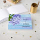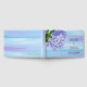 Blue hydrangeas floral wedding guest book. It showcases blue hortensia or hydrangea flowers on blue and purple watercolor background.