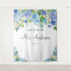 This blue floral bridal shower photo booth backdrop features watercolor hydrangeas and an elegant font combination. It is perfect for a bridal shower, a baby shower, a bachelorette & more. Personalize with your details.