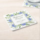 Blue Hydrangeas Script Rehearsal Dinner Square Paper Coaster