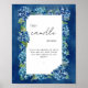 Looking for a wedding memorial table sign? Look to our Blue Hydrangeas This Candle Burns in Loving Memory Poster. Featuring elegant calligraphy that adds a touch of elegance, this blue floral wedding signage with hydrangea border frame makes a beautiful idea for a spring/summer wedding.