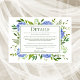 This beautiful details card with wispy watercolor foliage and multi-hued blue hydrangeas and coordinating blue striped back is perfect for any Spring or Summer wedding! Its colour combination is stunning and classic. There is a lot of room for you to type in the particular details of your wedding and the events surrounding it. Including it with your invitations will provide your loved ones and friends with every little thing they need to know about your wedding celebrations. In seconds you can see how your cards will look. Simply select Personalise this Template and type in your information to view your unique and gorgeous details cards.