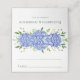 These blue hydrangea table seating assignment place cards are chic, elegant, and charming. Their beautiful design with multi-hued blue hydrangea and delicate wisps of natural greenery in contemporary watercolor styling with coordinating blue stripes on the interior are perfect for any wedding.