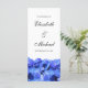 An elegant blue hydrangea wedding program on a white background. Easily personalise for your event.