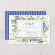 This charming and elegant RSVP card with beautiful, wispy, multi-hued blue hydrangeas and stunning green foliage and coordinating blue striped back is perfect for enclosing with your invitations. Your guests will find it easy to respond to your wedding. It's an excellent choice for any spring or summer bride. You can easily make it your own by selecting Personalise this template and typing in your response deadline. In seconds you will see your unique and stunning RSVP cards!