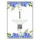 This sign is elegant and chic with flowing natural greenery and multi-hued blue hydrangeas. The font is modern and crisp making it easy for your guests to see the table numbers at your reception. It has a request for photo sharing to your wedding website by using your qr code. Guests will love sharing their beautiful photos with you. To create your table number signs simply select Personalise this template and type in your table number, type in your qr code URL, one at a time and add them in your cart. One per table number. Then repeat until you have all your table number cards. It will literally take you seconds to create each one.